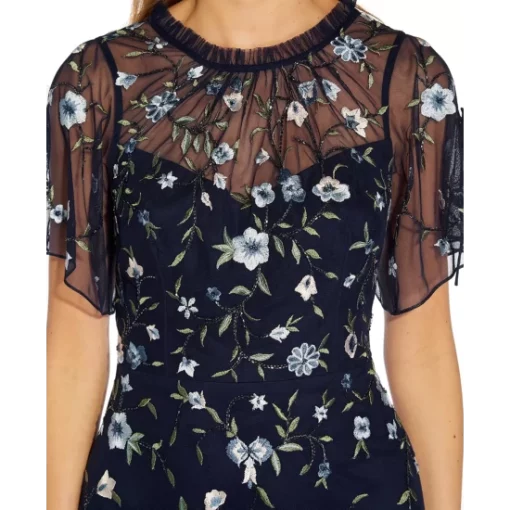 Promo π Adrianna Papell π© Women’s Printed Jacquard Embellished-Neck π Dress Navy Multi π―