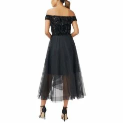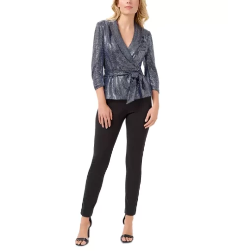 The Adrianna Papell Women’s Black Tuxedo Wrap Party Dress Is A Stylish And Elegant Dress Designed For Special Occasions Or Parties. The Dress Features A Tuxedo-style Wrap Design That Often Includes Elements Such As Lapels And A Cinched Waist, Similar To The Classic Tuxedo Jacket Silhouette. Black Adds A Touch Of Sophistication And Is A Versatile Choice For Formal Events.