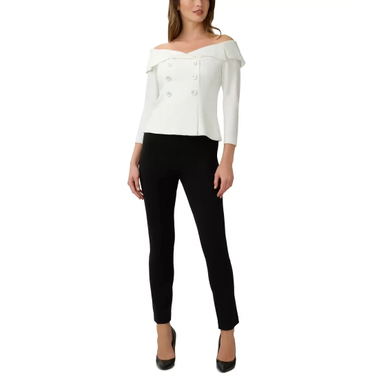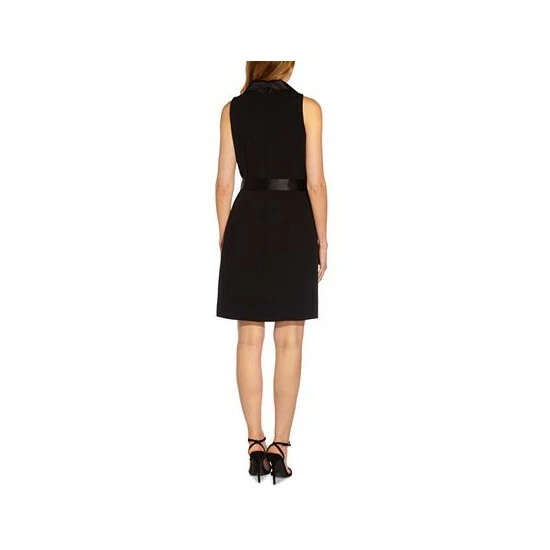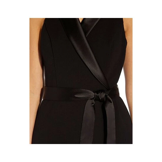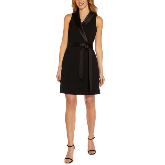Adrianna Papell Womenβs Tuxedo Wrap Party Dress Black