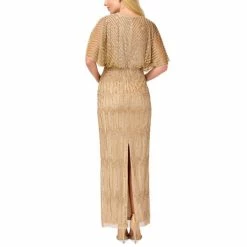 Hot Sale π Adrianna Papell π© Women’s Beaded Flutter-Sleeve Blouson Gown Champagne Gold π§¨