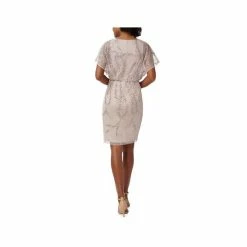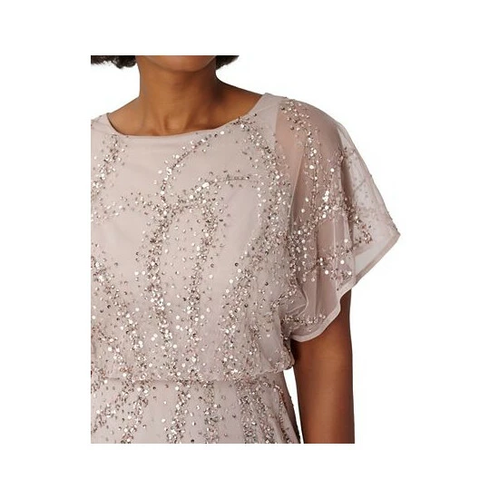 Placed in a chandelier-like design, light-catching beads and sequins sparkle on this short formal dress from Adrianna Papell.