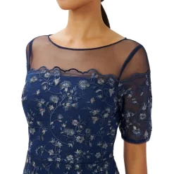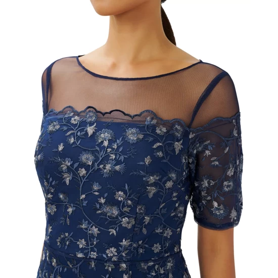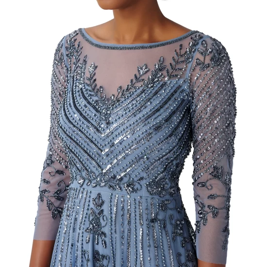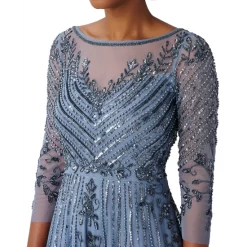 Wedding season ready! Adrianna Papell’s gorgeous gown features a beautifully embellished back and chic asymmetrical neckline.
