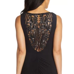 A romantic mix of beads and sequins sparkle throughout the sleeveless silhouette of this Adrianna Papell gown, designed with a blouson bodice and beautifully draped back.