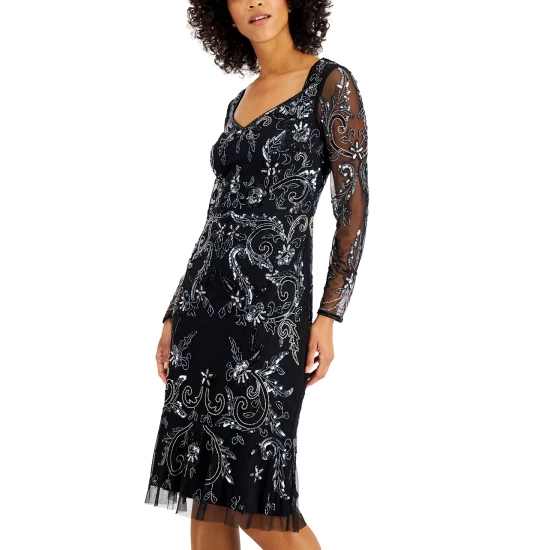 Transform your formal event look with this dress Adrianna Papell; featured with allover sequins and a flattering midi length.