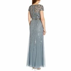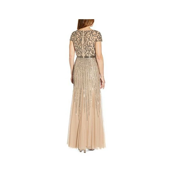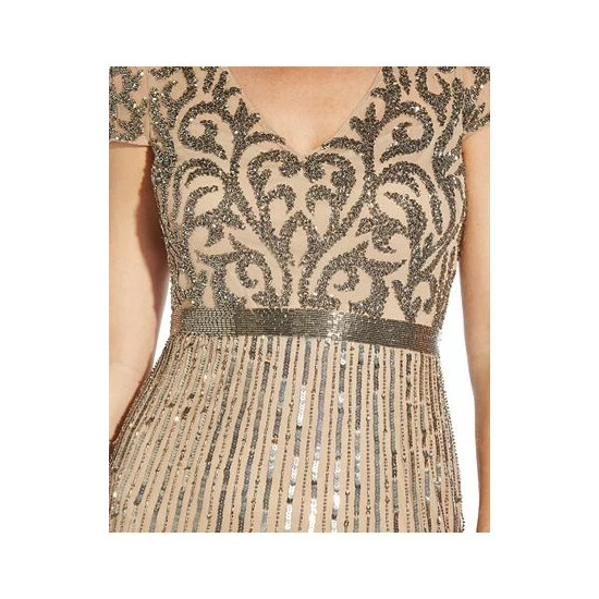 A mix of elegant embellished details accentuate the stunning silhouette of this show-stopping V-neck gown from Adrianna Papell.