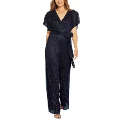 Adrianna Papell’s modern-chic jumpsuit is designed for elegant events with a touch of shimmer, a surplice neckline and a flowing wide-leg silhouette.