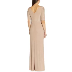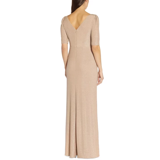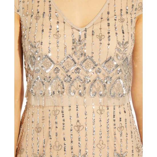 Lines of beads entwined with sequin sparkle add extra luster to this lovely petite gown from Adrianna Papell.