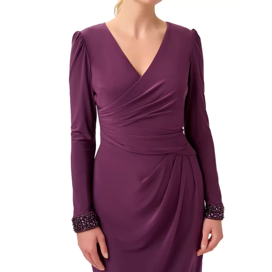 Adrianna Papell elevates the lines of this petite dress with a gathered waist and romantic puffed shoulders.