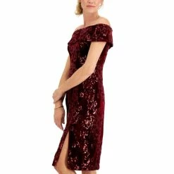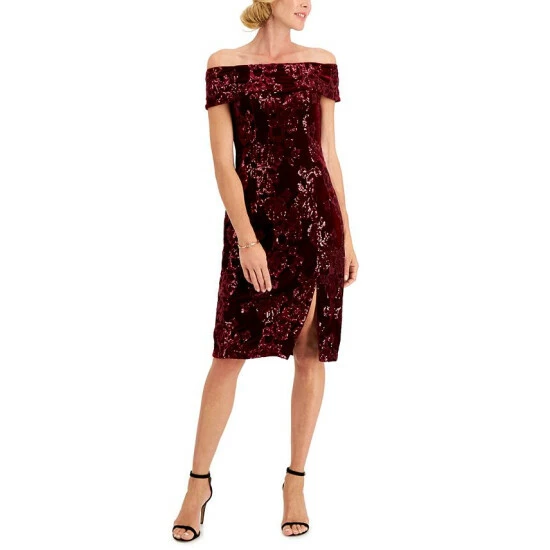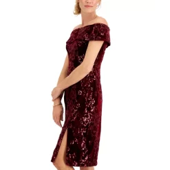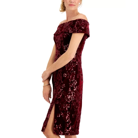 Sparkle and shine all night long. This glam sheath dress from Adrianna Papell shows off a little shoulder and catches the light with its completely sequined design.