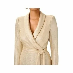 Lustrous tux-inspired styling glows with understated glam in Adrianna Papell’s plus size belted A-line dress with a surplice shawl collar.