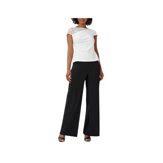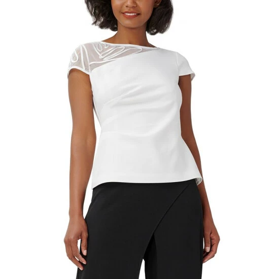 Soutache trim swirls across the sheer asymmetrical insert of this Adrianna Papell top to deliver a fresh slant on elegant style.