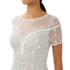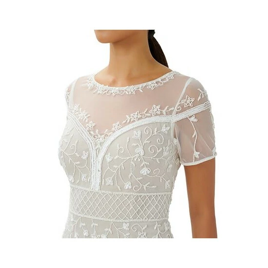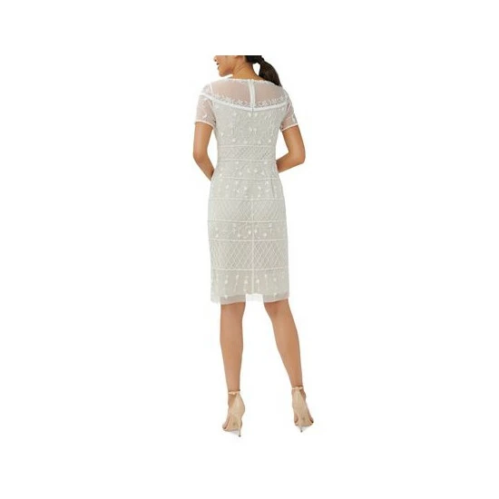 Tonal beads detail a fine mesh overlay on this picture-perfect dress by Adrianna Papell. Strappy heels will make it a fabulous look for a chic cocktail party.