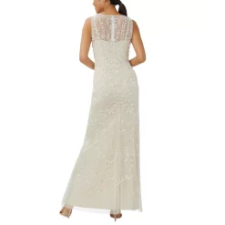 Puff sleeves lend a beautiful finish to this beaded gown from Adrianna Papell.