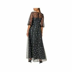 Dusted with diamond-shaped metallic dazzle, Adrianna Papell’s fit & flare gown enters any venue with an elegant air.