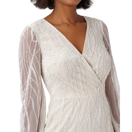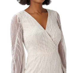 Tonal embellishments accent this beautiful mesh dress by Adrianna Papell. All it needs is the right heels to be ready for your next party.