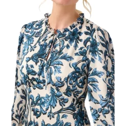 - Asymmetrical neckline; Fit & flare midi silhouette