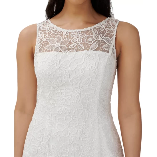 Lace lends an elegant finish to Adrianna Papell’s sheath dress.