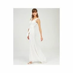 - Illusion V-neckline with eyelash lace detail, straight at bust; A-line silhouette