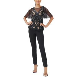 Lustrous tux-inspired styling glows with understated glam in Adrianna Papell’s belted A-line dress with a surplice shawl collar.