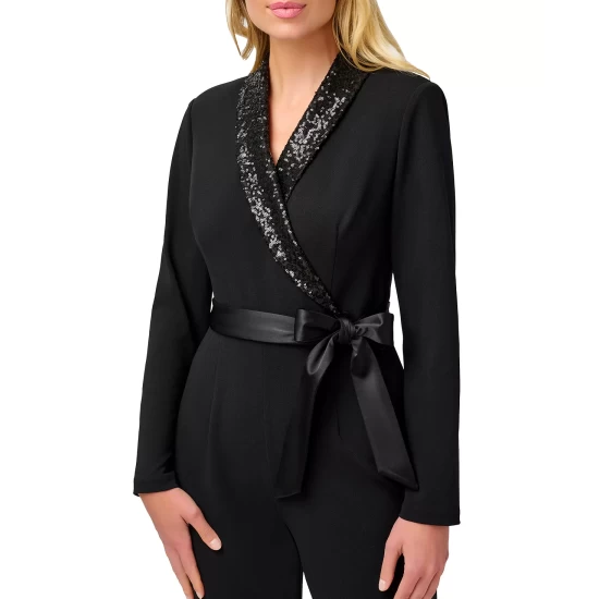 Shine at your next formal affair in this sequined-collar jumpsuit from Adrianna Papell.