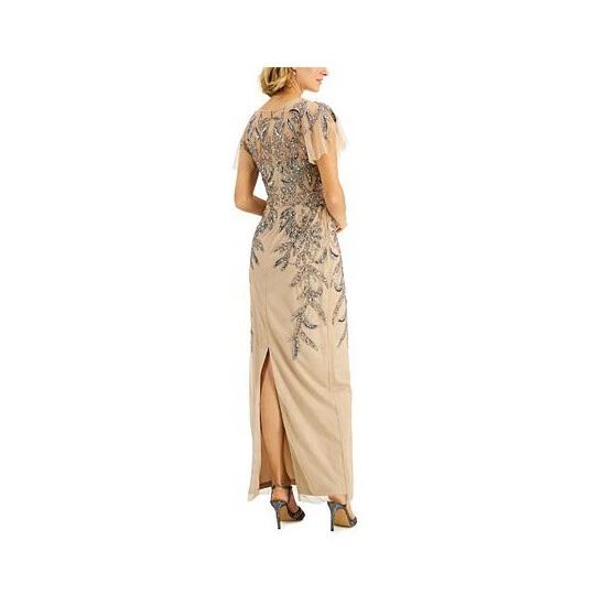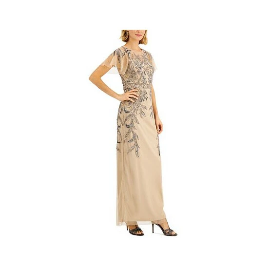 Cascading embellishments draw the eye to this exquisite evening gown by Adrianna Papell.