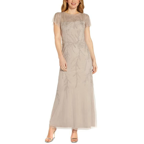 Be the fairest at your fΓͺte in Papell Studio’s breathtaking beaded gown, elegantly finished with flutter sleeves.