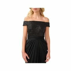 Drape yourself in glamour with this off-the-shoulder gown from Papell Studio, polished with sequins at the top for a glittering finish.